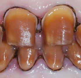 是什么引起了四环素牙这种可恶的病症呢?据介绍,四环素牙是在牙齿发育期间,服用了较多的四环素族药物引起。四环素结合到牙组织内,使牙着色,这种着色可为阳光促进逐渐变深,故而前牙着色一般比后牙更为明显。